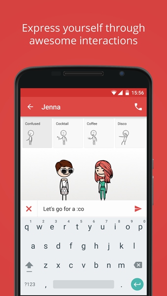 在MimeChat軟件中你可以定制自己角色的外形,發(fā)型、膚色、服飾都可以,簡單線條勾勒出的形象也是很可愛。其最大的特色是用兩個卡通角色代表雙方,最贊的是這兩個角色是可以動的哦~。如果覺得互發(fā)表情斗圖都無法滿足溝通的欲望,一定來試試本軟件。【特點】