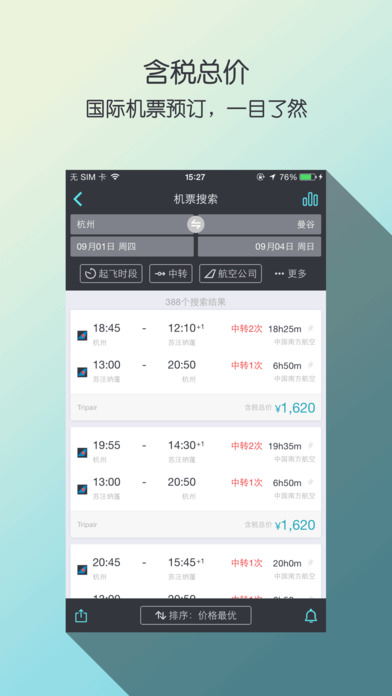 2.國際機(jī)票增加更多可以直接在APP內(nèi)直接預(yù)定(免跳轉(zhuǎn))的供應(yīng)商,快人一步訂到低價(jià)機(jī)票;