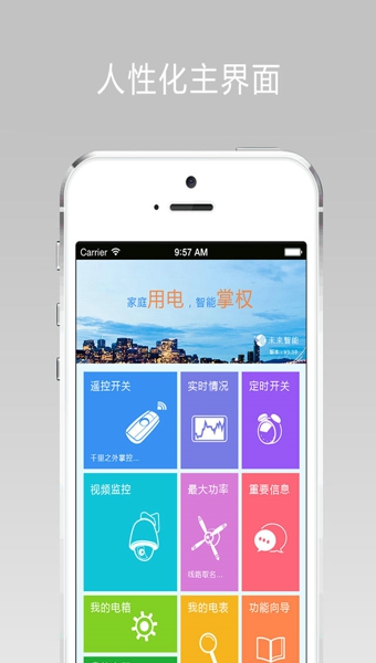 1、通過手機實現(xiàn)家庭用電管理,提高用電安全和家居智能化;2、通過手機都能實時掌握和處理家里用電安全事件,管理電器使用、查看家庭視頻,可視門鈴,遠程切斷燃氣,遠程開關(guān)燈、窗戶和空調(diào)。