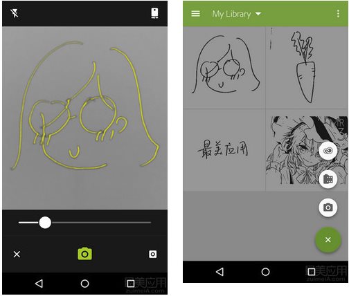 應(yīng)用打開(kāi)即是拍照頁(yè)面,會(huì)自動(dòng)提取畫面中的線條,你可以手動(dòng)調(diào)整精確度,最終它為你生成一張 png 圖片。