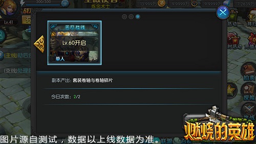 玩家等級(jí)達(dá)到60級(jí)時(shí),可以開啟“無盡戰(zhàn)線”功能,點(diǎn)擊主界面“挑戰(zhàn)”可以進(jìn)入“無盡戰(zhàn)線”界面?!盁o盡戰(zhàn)線”為單人模式,玩家每天有2次免費(fèi)挑戰(zhàn)機(jī)會(huì),每通關(guān)5層會(huì)獲得一次獎(jiǎng)勵(lì),獎(jiǎng)勵(lì)主要為裝備熔鑄所需的卷軸材料。