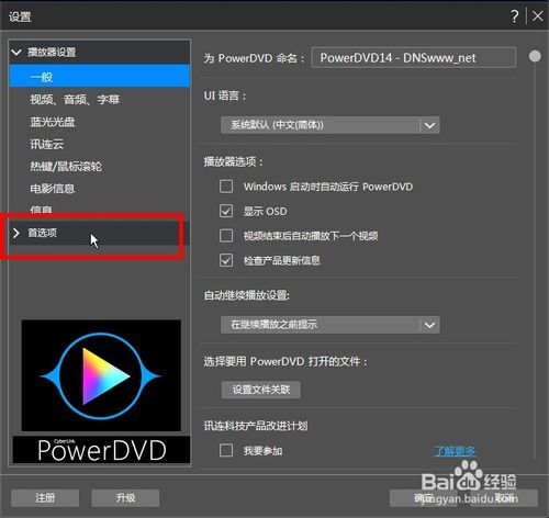 在訊連科技PowerDVD設(shè)置的界面,選擇”視頻“這一項(xiàng)。