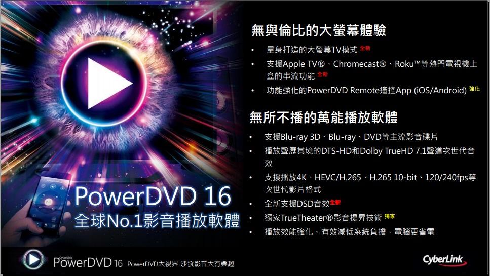 簡(jiǎn)單易用,讓享樂不是一件麻煩事!PowerDVD全方位支持各式熱門光盤、影音格式、在線影音平臺(tái)和媒體串流裝置,同時(shí)配備專屬行動(dòng)App,所有影音需求一次滿足,超方便寫意!