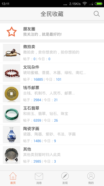 全民收藏致力打造廣大藏友互動的社交平臺。在這里,你可以成為專業(yè)的大師,也可以請大師幫你鑒寶,還可以不斷的刷自己的存在感,找到一群志同道合的朋友。大藏家之路總是孤獨(dú)且崎嶇的,我們能做的僅僅是成為您的指南針!全民收藏包含內(nèi)容廣泛,涉及錢幣、郵票、玉石翡翠、金銀珠寶、陶瓷字畫和文玩雜件等,用戶通過平臺可進(jìn)行鑒寶、交易、交友等,方便收藏愛好者與廣大藏友共同學(xué)習(xí),共同進(jìn)步。