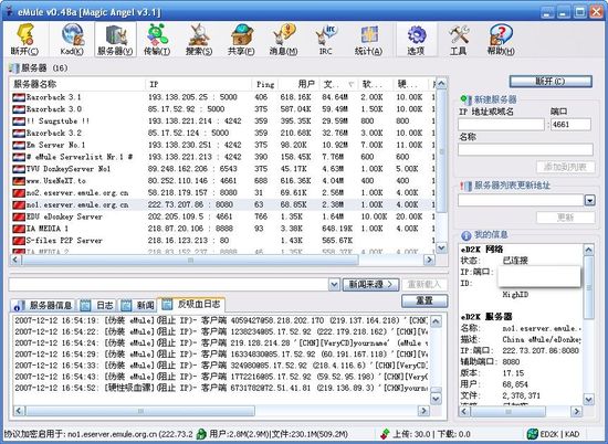 本漢化版基于作者在 eMule 官方論壇發(fā)給我的新版制作而成,雖然版本顯示是v3.1 但實(shí)質(zhì)上是 v3.2b7 版,修改了 v3.1 中的部分 Bug。雖然說是 beta 版但運(yùn)行起來很穩(wěn)定,我使用幾個(gè)月尚未出現(xiàn)過崩潰的情況。