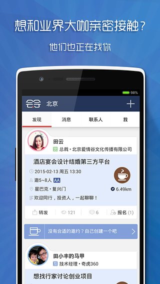 3.關(guān)系推薦主要依據(jù)地理位置、所處行業(yè)、手機(jī)通訊錄幾個(gè)維度,以幫用戶找到更相關(guān)的人,同時(shí)促成更高效的會面。