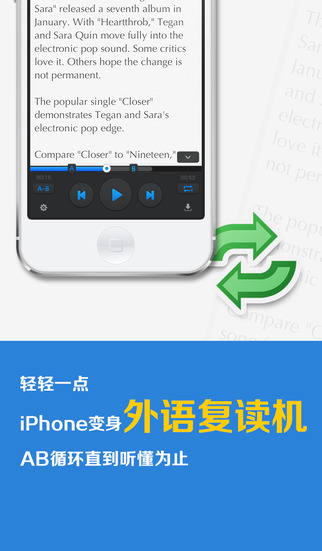 3、炫酷復(fù)讀功能:輕輕一點(diǎn),讓你的iPhone變成外語復(fù)讀機(jī),AB循環(huán),直到聽懂為止;
