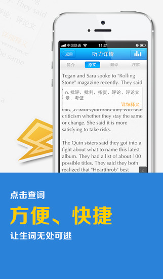 6、劃詞翻譯:支持點(diǎn)擊查詞功能,方便、快捷,陌生的單詞再也不能放過;