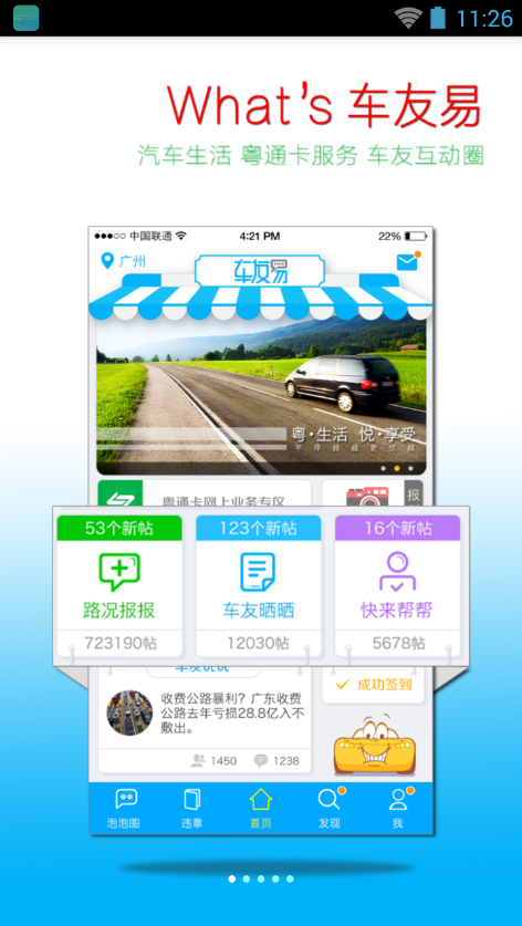 版本:v1.0 日期:2015.07.021.車友說說適配屏幕;