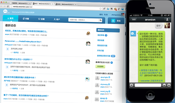 Wecenter是通過積累來源于微信,微薄,APP,社區(qū)等用戶的碎片信息,利用社交互動的模式,分析數(shù)據(jù),提煉數(shù)據(jù),最終幫助企業(yè)和組織積累符合他們需求的知識百科!