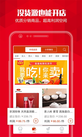 所有分銷商品都可以一鍵上架到你的店鋪,不需要花錢進(jìn)貨、壓貨,完全零成本買家在你的店鋪下單購(gòu)買后,由供貨商直接發(fā)貨給買家。交易完成后,你就可以收獲傭金。