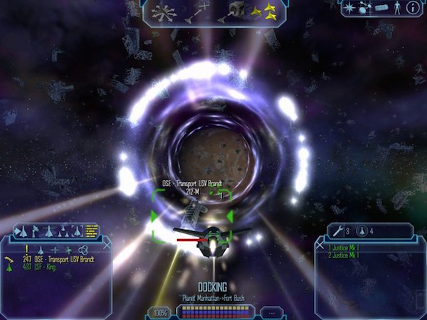 我按住導(dǎo)彈發(fā)射按鈕,準(zhǔn)備拉這兩艘“誤導(dǎo)”我們的Rheinland戰(zhàn)機(jī)一同陪葬。他們似乎更明白形勢(shì),開啟隱形護(hù)罩消失了!當(dāng)敵戰(zhàn)列艦放出一支攻擊編隊(duì)后,那兩架Rheinland戰(zhàn)機(jī)突然出現(xiàn)在戰(zhàn)列艦旁邊,發(fā)射出多顆魚雷彈,竟然將戰(zhàn)列艦摧毀了!看來,Rheinland的內(nèi)部并不是鐵板一塊。接下來與敵攻擊編隊(duì)的戰(zhàn)斗非常艱難,由于維修品已在前面的戰(zhàn)斗中幾乎消耗光了,而且一直沒有得到補(bǔ)充,我不得不將大部分精力放在躲避敵人的攻擊上。清除這幫敵人,我們才得以經(jīng)由傳送洞回到Bretonia星系,安全降落到Leeds星球上。回家的感覺真好!經(jīng)過這么多回Rheinland戰(zhàn)機(jī)的“訓(xùn)練”,我再去找星系里Molly勢(shì)力的晦氣時(shí)竟然覺得比以前輕松許多。當(dāng)升至11級(jí)后,朱妮約我到Dublin星系會(huì)面。