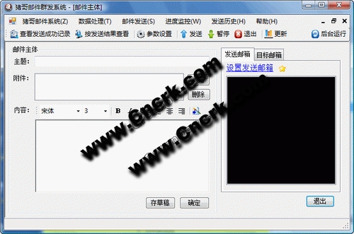 豬哥郵件群發(fā)系統(tǒng) V1.0 簡體中文綠色免費(fèi)版 豬哥郵件群發(fā)系統(tǒng)是一種功能強(qiáng)大的郵件群發(fā)軟件,在發(fā)送郵件的功能上,有比普通郵件發(fā)送軟件更快速、高效的突出優(yōu)點(diǎn)。其專業(yè)化的功能設(shè)計(jì)、方便快捷的操作方式會(huì)使用戶的郵件發(fā)送工作變成輕松愜意的享受。