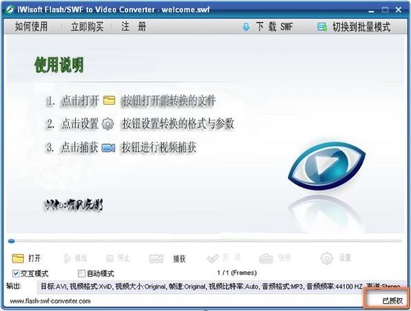 iWisoft Flash SWF 格式轉(zhuǎn)換器是SWF轉(zhuǎn)換器。您可以轉(zhuǎn)換包括音頻、 操作腳本或?yàn)槿魏我曨l格式的影片剪輯的SWF。無需復(fù)雜的設(shè)置,始終保持原始視頻和音頻的優(yōu)秀品質(zhì)。