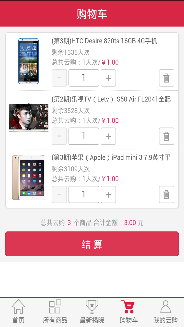 1、人人云購(gòu)是一種新型的網(wǎng)購(gòu)模式,秉承著人人為我,我為人人的模式,每件商品只需1元就有可能買(mǎi)到。2、人人云購(gòu)網(wǎng)把一件商品平分成若干“等份”出售,每份1元,當(dāng)一件商品所有“等份”售出后系統(tǒng)自動(dòng)抽出一名幸運(yùn)者,該幸運(yùn)者即可獲得此商品。