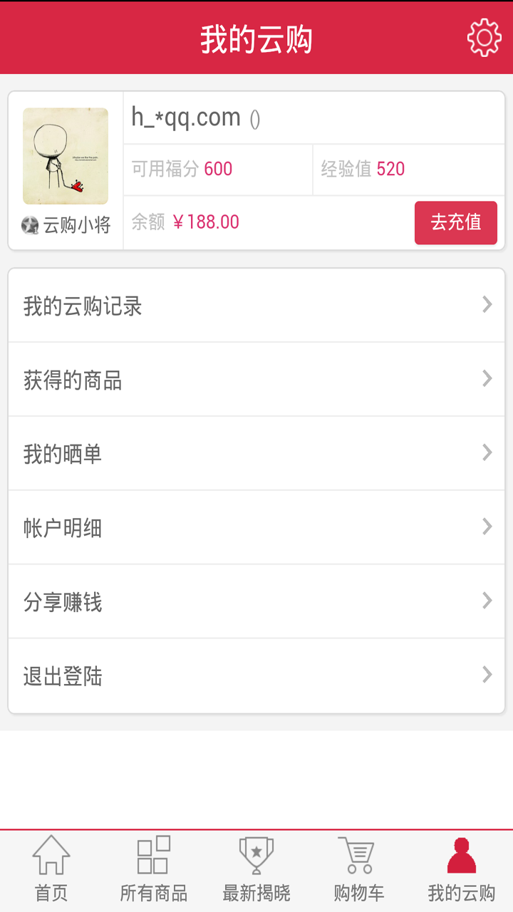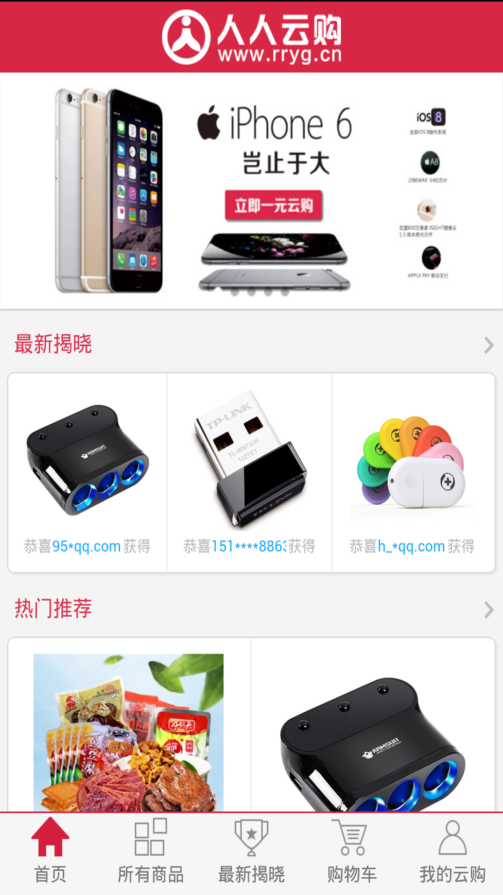人人云購(gòu)是一種新型的網(wǎng)購(gòu)模式,秉承著人人為我,我為人人的模式,每件商品只需1元就有可能買(mǎi)到。人人云購(gòu)網(wǎng)把一件商品平分成若干“等份”出售,每份1元,當(dāng)一件商品所有“等份”售出后系統(tǒng)自動(dòng)抽出一名幸運(yùn)者,該幸運(yùn)者即可獲得此商品。【軟件特點(diǎn)】