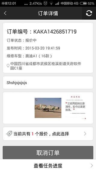 卡卡愛車(技師版)是由成都錦貓科技有限公司開發(fā)、運(yùn)維的手機(jī)客戶端軟件平臺。汽車用戶通過軟件能快速完成日常汽車保養(yǎng),維修。通過實(shí)時訂單系統(tǒng)、LBS、任務(wù)云匹配功能,省去中間環(huán)節(jié),實(shí)現(xiàn)用戶與維修司機(jī)的無縫對接,節(jié)約維修成本和時間。