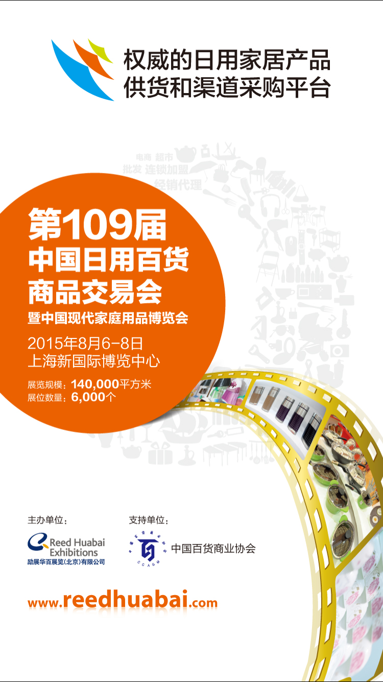 貨匯應(yīng)用軟件是一款匯集中國(guó)乃至國(guó)際領(lǐng)先品牌家庭用品生產(chǎn)商及供應(yīng)商,百貨會(huì)是國(guó)內(nèi)家庭用品經(jīng)銷商、代理商、批發(fā)商、百貨商超及新興渠道采購(gòu)商尋源新品、高效進(jìn)行評(píng)估采購(gòu)、拓展合作伙伴,以及通過豐富的現(xiàn)場(chǎng)活動(dòng)與行業(yè)人士交流行業(yè)趨勢(shì)、獲取高價(jià)值市場(chǎng)資訊的唯一的、真正全國(guó)性盛會(huì),提供最廣泛的選擇和最佳性價(jià)比的全品類產(chǎn)品,也是一年一度的新品集中發(fā)布平臺(tái)。2015年8月6-8日,第109屆百貨會(huì)將在上海新國(guó)際展覽中心隆重舉行!百貨會(huì)是國(guó)內(nèi)家庭用品經(jīng)銷商、代理商、批發(fā)商、百貨商超及新興渠道采購(gòu)商尋源新品、高效進(jìn)行評(píng)估采購(gòu)、拓展合作伙伴,以及通過豐富的現(xiàn)場(chǎng)活動(dòng)與行業(yè)人士交流行業(yè)趨勢(shì)、獲取高價(jià)值市場(chǎng)資訊的唯一的、真正全國(guó)性盛會(huì)。