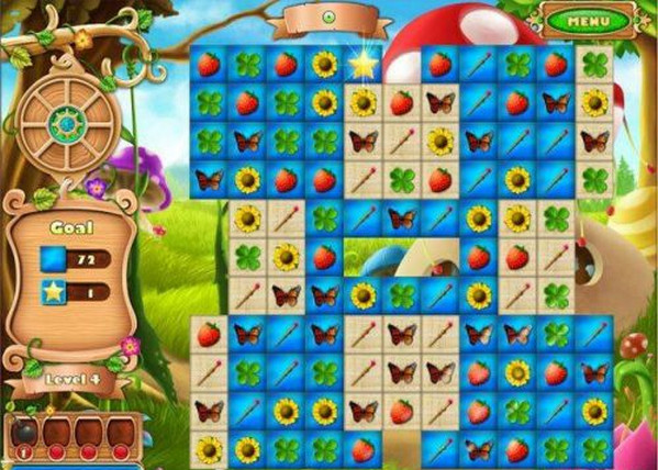 游戲的基本玩法和其它三消游戲沒什么不同,需要注意的是你必須滿足一定的條件才可以完成挑戰(zhàn)。在界面左側(cè)顯示了通關(guān)條件,比如讓一定數(shù)量的魔法星星到達(dá)屏幕下方,消除紅色的、藍(lán)色的方塊等等。