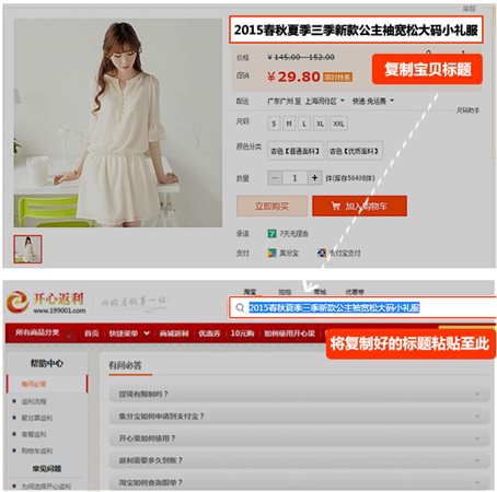 第一步:復(fù)制標(biāo)題復(fù)制淘寶/天貓寶貝標(biāo)題,到開(kāi)心返利搜索