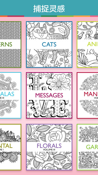 Colorfyapp給圖案上色相當于二次創(chuàng)作,一幅黑白色的圖案隨著各種顏色的添加會變的相當有魔力,另外填充不同的顏色所呈現(xiàn)的效果各異,激發(fā)大家給作品上色的動力。為了照顧小屏幕,Colorfy在上色時支持雙指縮放圖案、移動,方便你隨時給細節(jié)和局部填充。沒有畫筆,使用手指即可,右上角是顏色庫,有豐富的顏料可選,不過有些顏色需要付費購買,界面頂部有三個色板,可以快速調(diào)用不同的顏色。圖案中每一個封閉的圖形都被識別為一個單位,點擊即可實現(xiàn)填充,非常簡單,但是每一幅圖都是這些繁雜的圖形組成,所以你必須有足夠的耐心。