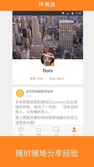 2.0版本主要特色是:1.像朋友圈一樣玩轉(zhuǎn)壞男孩社區(qū)