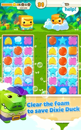 ● 消除香皂泡泡,幫助鴨子 Dixie 逃跑
