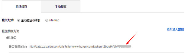 第二步是輸入準(zhǔn)入密鑰,在百度站長平臺(tái)后臺(tái)登陸后有這個(gè)密鑰。對(duì)應(yīng)的域名填上對(duì)應(yīng)的密鑰。如: