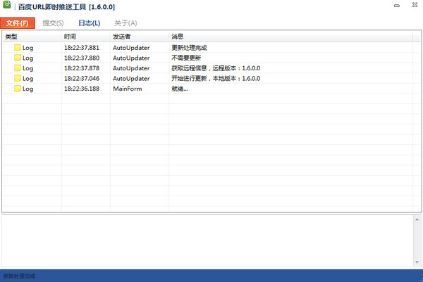 百度url即時(shí)推送工具是一款人氣百度url即時(shí)推送小工具。該工具不僅小巧綠色,還可以幫助用戶快速將網(wǎng)頁推送給百度,也許運(yùn)氣好,百度一分鐘即可收錄提交的網(wǎng)頁。百度url即時(shí)推送工具可以幫助用戶快速將百度沒有收錄的、或者是新做的頁面百度未抓取的方便的提交給百度的的url批量提交工具。