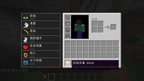 這個(gè)Mod添加了一個(gè)物品經(jīng)驗(yàn)勛章,將它放置于背包里,如果玩家經(jīng)驗(yàn)等級(jí)>=5,那么它就會(huì)產(chǎn)生作用了~