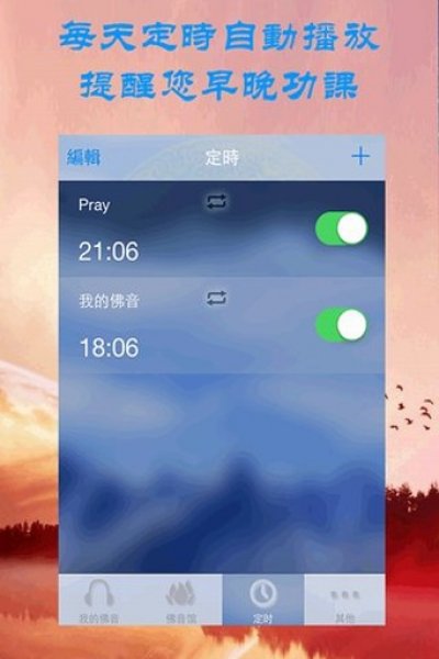 1、 眾多靜心佛曲與密咒真言供您試聽2、 可定時(shí)設(shè)置,每天定時(shí)自動(dòng)播放歌曲,提醒您早晚功課,也可做音樂(lè)鬧鐘