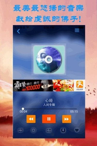 體驗(yàn)最寧?kù)o的天籟之音,讓您在忙碌中放松心靈,驅(qū)逐煩惱??!細(xì)心的定時(shí)設(shè)置,早晚課自動(dòng)音樂(lè)提醒,讓您更易親近佛法。為您提供最全面的佛教音樂(lè),經(jīng)典經(jīng)文念唱