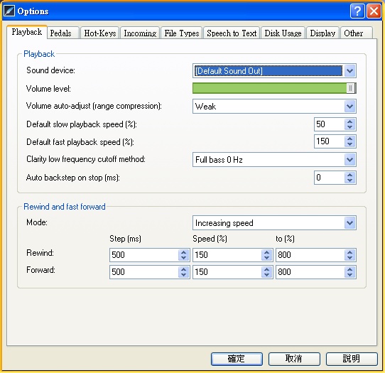 Express Scribe具有變速播放、踏板操作、語(yǔ)音辨識(shí)、檔案管理等特色。播放壓縮的wav及dct檔案、變速(聲調(diào)固定)錄放、用踏板或是系統(tǒng)熱鍵控制播放、可在MicrosoftWord以及其他主流文書處理應(yīng)用程式上使用。 此外可搭配語(yǔ)音辨識(shí)軟體(如Dragon Naturally Speaking)自動(dòng)將文字轉(zhuǎn)換為語(yǔ)音。此外可搭配語(yǔ)音辨識(shí)軟體(如DragonNaturallySpeaking)自動(dòng)將文字轉(zhuǎn)換為語(yǔ)音