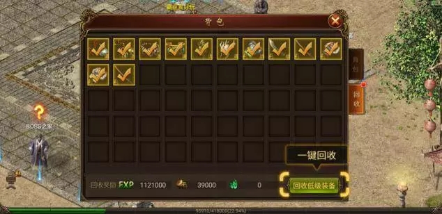 隨著等級的提升,打到的很多裝備都顯得低級,不適合我們使用了,別看這些裝備沒什么穿的價值,它們可是能回收獲得大量經(jīng)驗的!所以,每次擊殺怪物掉落的裝備,不管高級低級,統(tǒng)統(tǒng)撿起來,攢滿背包到比奇城裝備回收員那兒回收。雖然麻煩點兒,可再小的肉也是肉嘛。