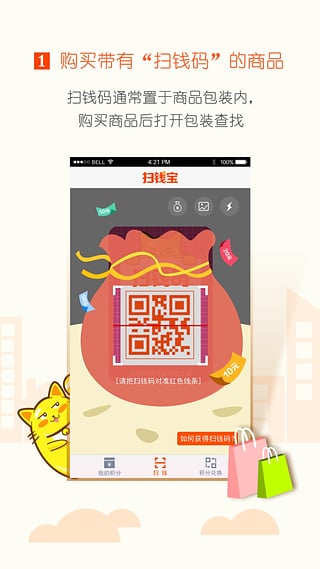 掃錢寶app是一款手機(jī)購物積分返利應(yīng)用。該應(yīng)用操作非常簡單,只需打開軟件對(duì)著商品上的二維碼掃掃,即可輕松獲取積分,并且積分可兌換相應(yīng)的物品:現(xiàn)金、充值卡。