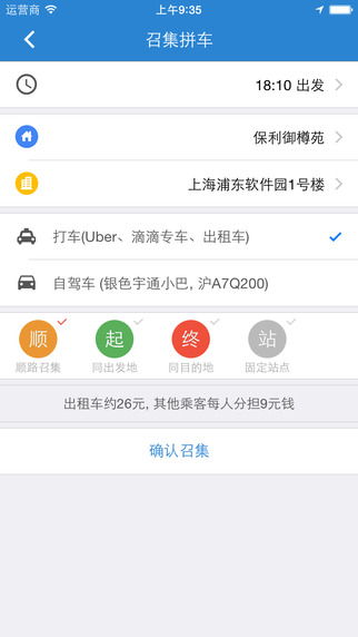 1. 召集者根據(jù)自己的行程召集順路拼車,等待其他相似行程的人加入,收取相應(yīng)的費(fèi)用2. 搭車乘客根據(jù)自己行程找到相似的拼車行程,并支付給召集人分擔(dān)的費(fèi)用