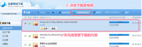 4.選擇網(wǎng)盤內(nèi)容,點擊下載到電視/盒子