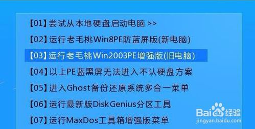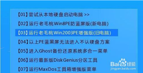 gghost硬盤安裝器如何恢復(fù)c盤鏡像將使用制作好的u盤啟動盤插入電腦,隨后運行老毛桃win03pe系統(tǒng),如圖所示: