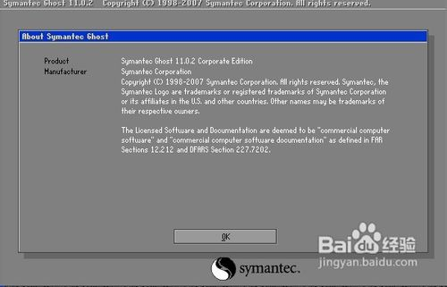 啟動之后第一個彈出界面是關(guān)于Ghost的相關(guān)版本版權(quán)信息,直接點擊OK關(guān)閉進(jìn)入下一步驟