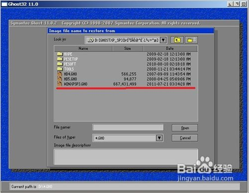 這時會彈出窗口要我們選擇需要恢復(fù)的鏡像文件,找到我們需要的系統(tǒng)鏡像文件(一般就是體積最大的.gho后綴文件)然后點擊選中它