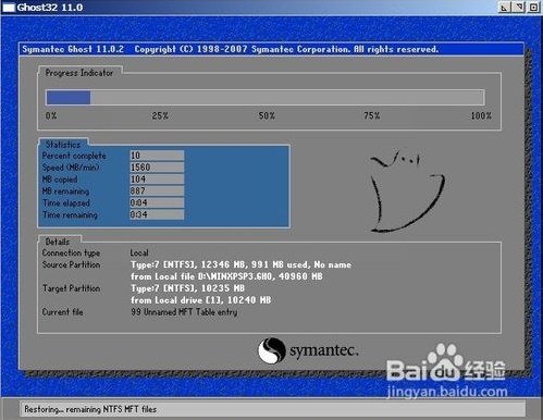 之后Ghost11便開始執(zhí)行上述操作,待進(jìn)度條走完Ghost11提示需要重啟,我們重啟就可以完成系統(tǒng)的恢復(fù)了,要記得重啟之后啟動盤要改成硬盤