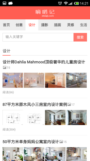 嘀嗒記有創(chuàng)意、設(shè)計(jì)、攝影、插畫、生活、靈感六個(gè)分類。嘀嗒記旨在分享創(chuàng)意,分享生活中的創(chuàng)意科技、創(chuàng)意家居、創(chuàng)意設(shè)計(jì),希望我們的網(wǎng)站能提高您對(duì)設(shè)計(jì)的感知,能讓你積累。【軟件特點(diǎn)】