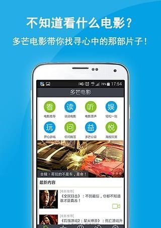 匯聚全網(wǎng)熱播電視劇、綜藝、最新電影、動漫、美劇、微電影、影訊、娛樂、音樂、體育等海量高清視頻,精選優(yōu)酷、騰訊、愛奇藝、pptv、土豆、搜狐視頻等多家視頻資源,免費(fèi)在線觀看、高清流暢播放,支持微博、微信、QQ、朋友圈一鍵分享。除此,勁爆游戲、圖解電影、高清海報、電影原聲免費(fèi)提供,一鍵收藏下載。多芒電影:“傾心一薦,妙不可言!”海量淘片太累了?多芒電影合輯傾心為你推薦精彩影片!你只需要看好、聽好、玩好,發(fā)現(xiàn)好東東的任務(wù)統(tǒng)統(tǒng)交給我們吧!【軟件功能】