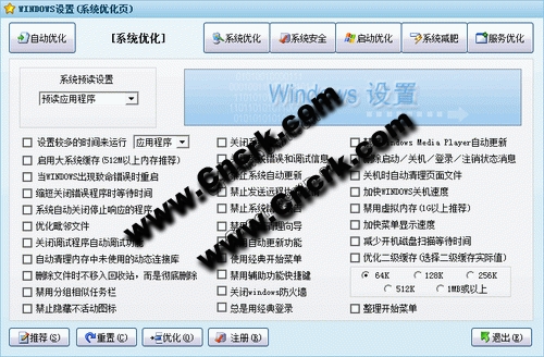 WINDOWS設(shè)置是一個(gè)WINDOWS的系統(tǒng)多功能工具,可以優(yōu)化系統(tǒng),管理服務(wù),IE安全,操作限制,硬盤隱藏,硬盤禁用等等很多功能。
