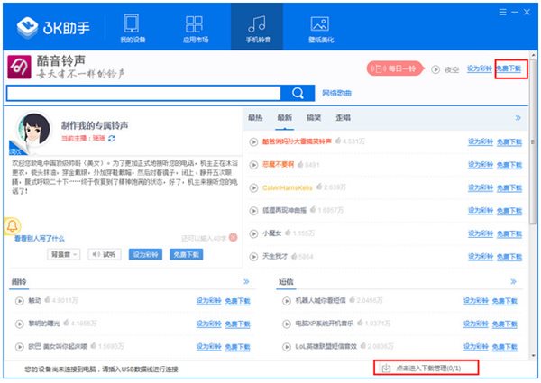 4、點擊進入下載管理==鈴聲壁紙==點擊導(dǎo)入