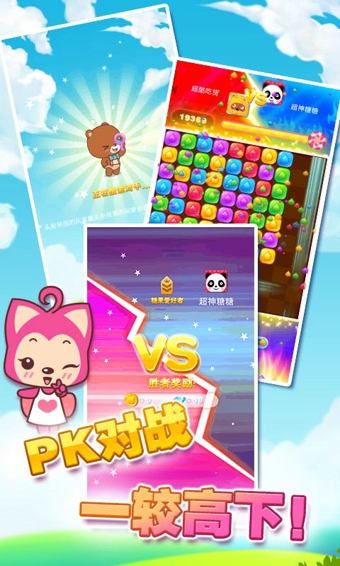 游戲玩法:點擊即可消除同色相鄰的糖果,操作簡單容易上手。輔助道具應有盡有,強化變身樂趣無限!模式多多:既能單機闖關(guān)挑戰(zhàn)極限,也能和其他玩家PK對戰(zhàn),更有機會和阿貍一較高下!