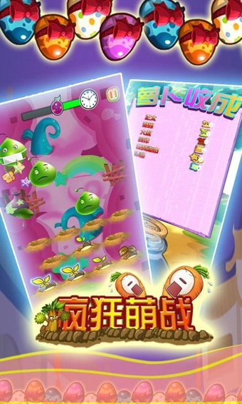 瘋狂萌戰(zhàn)是一款休閑益智類型的游戲,游戲創(chuàng)新的融合了打地鼠和劃水的一些元素,游戲采用類似的九宮格土地樣式,蘿卜會(huì)從土地上的一些洞口隨機(jī)冒出來(lái),你只需要在那一瞬間用手指滑動(dòng)冒出洞口的蘿即可,游戲期間劃的蘿卜越多,得到的分?jǐn)?shù)也就越多。