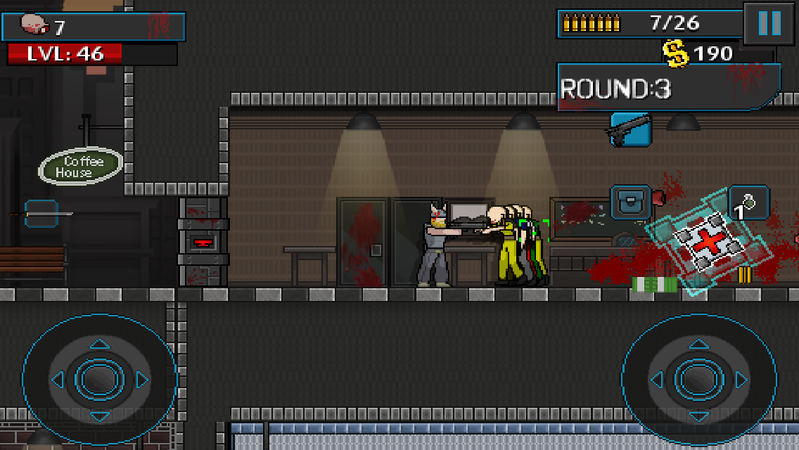 僵尸擊殺重生版是個13年時候的一個同名游戲的續(xù)尾成果,來源于更早之前的桌面平臺的較有名氣的獨(dú)立游戲的復(fù)刻。這個游戲的玩法類似使命召喚的僵尸模式,包括解鎖區(qū)域和購買槍支等,不同的地方在于這個游戲是像素2D風(fēng)格而且也沒那個3A游戲那么知名。