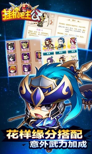 全民掛三國(guó)手游是一款以三國(guó)為題材的角色扮演游戲,擁有Q版的人物角色、精美細(xì)膩的游戲畫(huà)面、炫酷的戰(zhàn)斗場(chǎng)景以及豐富的游戲玩法,讓玩家顛覆對(duì)三國(guó)的固有想象。