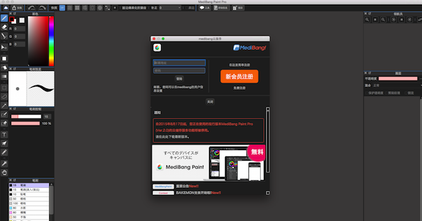 首先請找到位于軟件界面頂部的“工具”按鈕(如圖所示),點(diǎn)擊它,會出現(xiàn)“需要下載素材嗎”的提示欄,選擇“是”。通過以上操作,儲存在云端的網(wǎng)點(diǎn)和背景素材就會下載到你所使用的軟件中。 p.s. 下載網(wǎng)點(diǎn)和背景素材時(shí),需先登錄您的MediBang賬號。